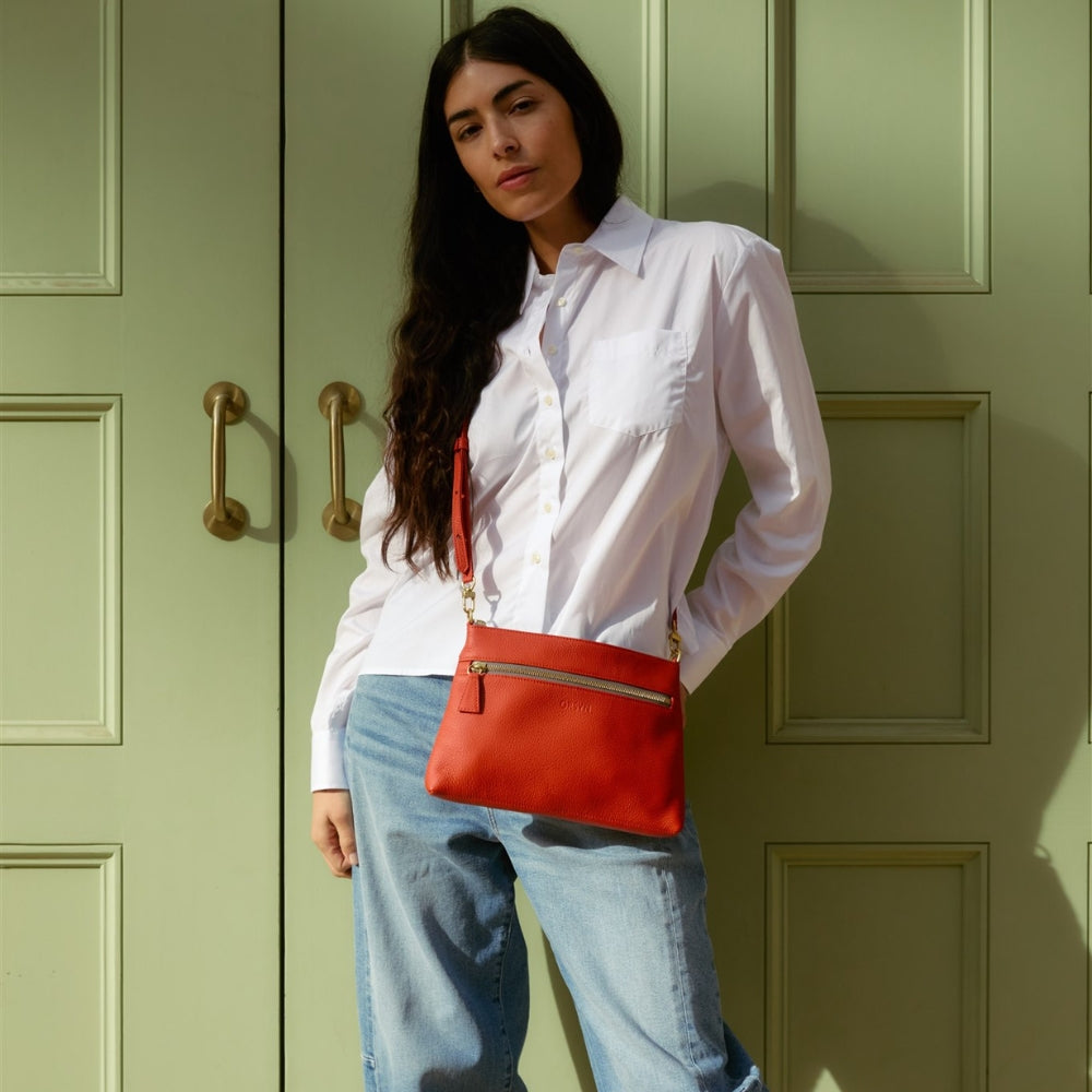 The Rome Crossbody is designed for days when less is more. With a streamlined silhouette, interior card slots, and a back slip pocket, it carries essentials with effortless style.